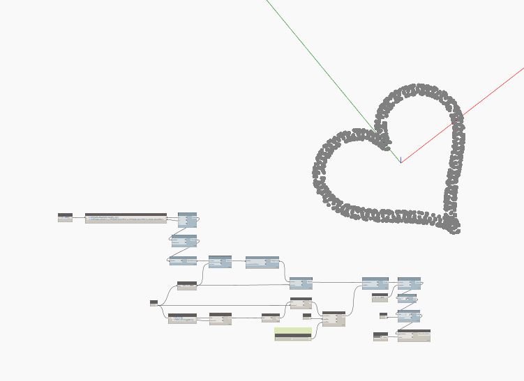 ตัวอย่างการใช้งานสูตรทางคณิตศาสตร์ ใน Dynamo เพื่อสร้างรูปหัวใจ