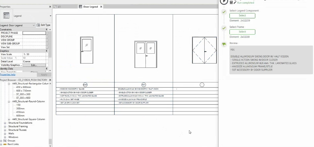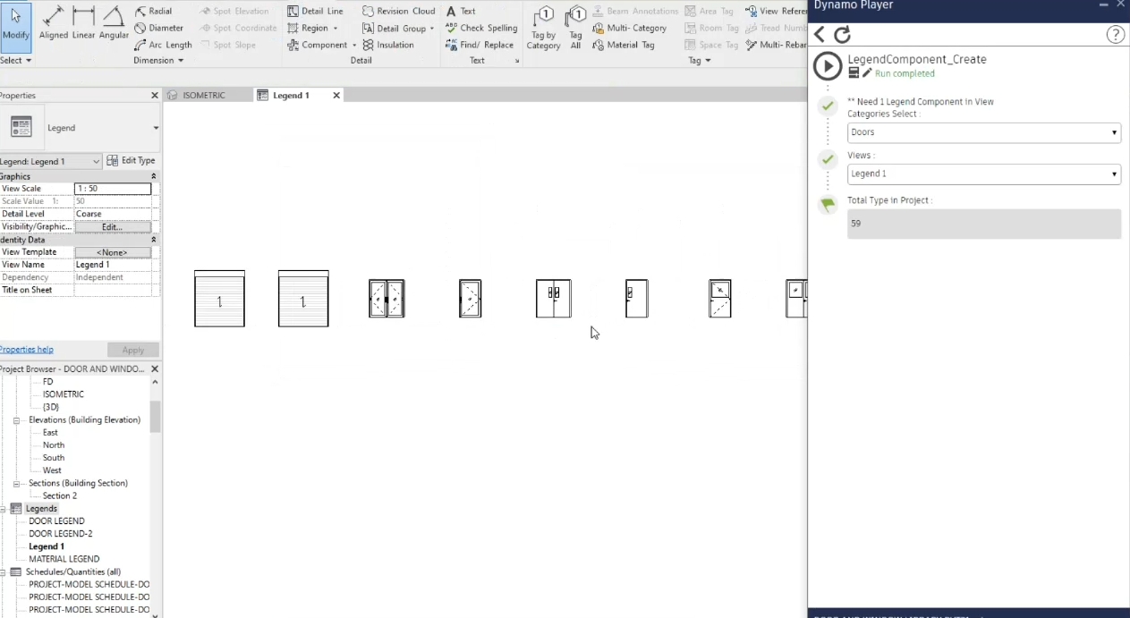 สาธิตการดึงข้อมูล Description ของ ประตูออกมาใส่ในตารางหน้า Legend Component โดยใช้ Dynamo Player