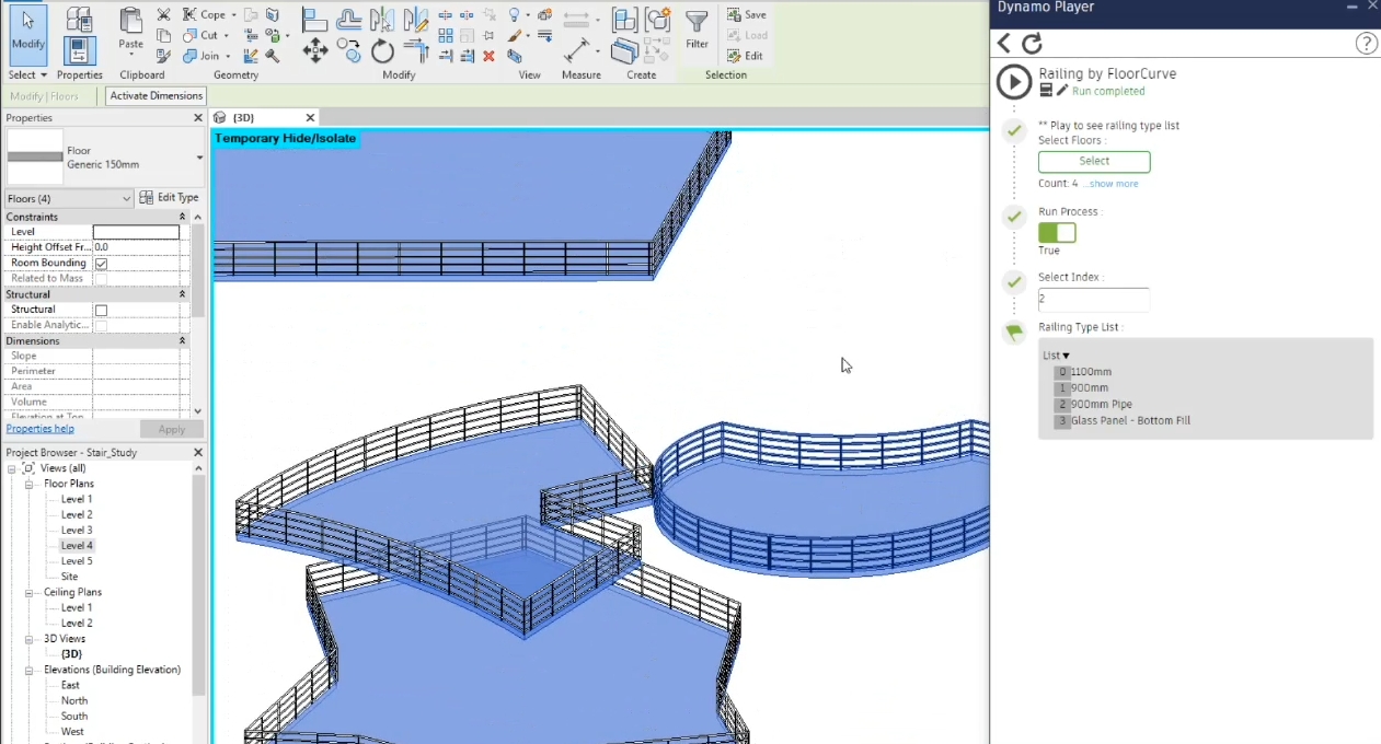สาธิตการสร้าง Railing อัตโนมัติ จากการเลือก Floor โดยใช้ Dynamo Player